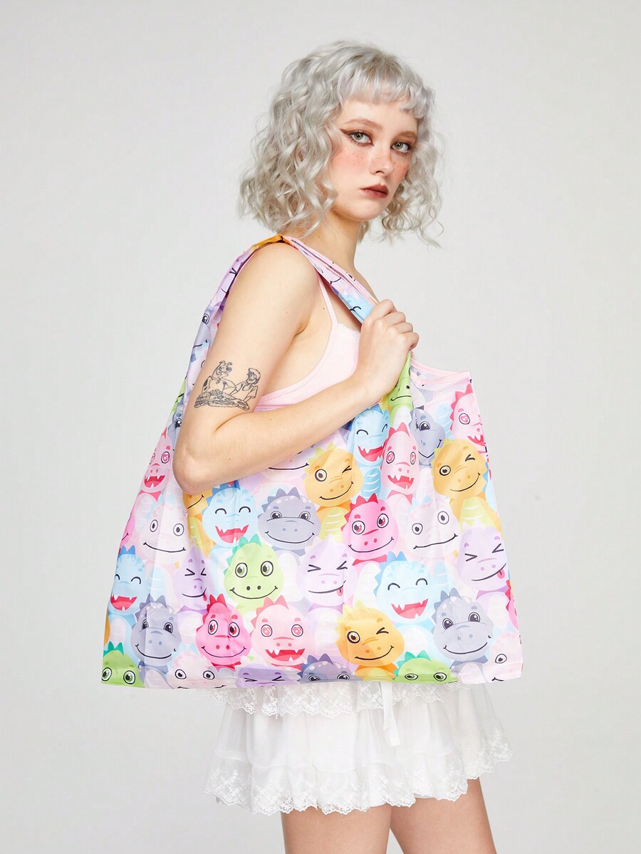 Kawaii 2pcs Cartoon Dinosaur Print Shopper Bag