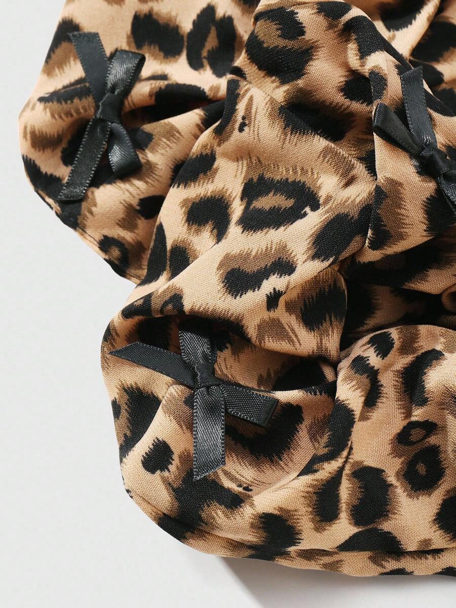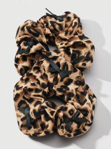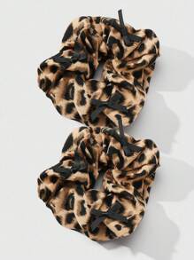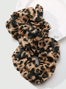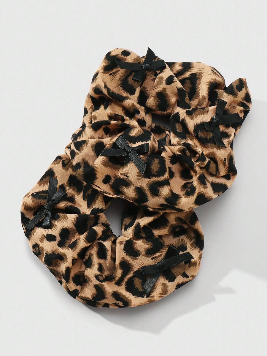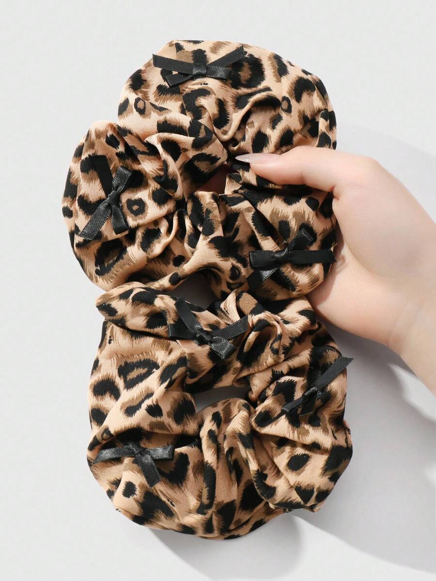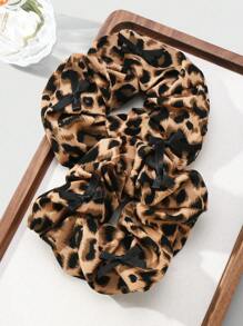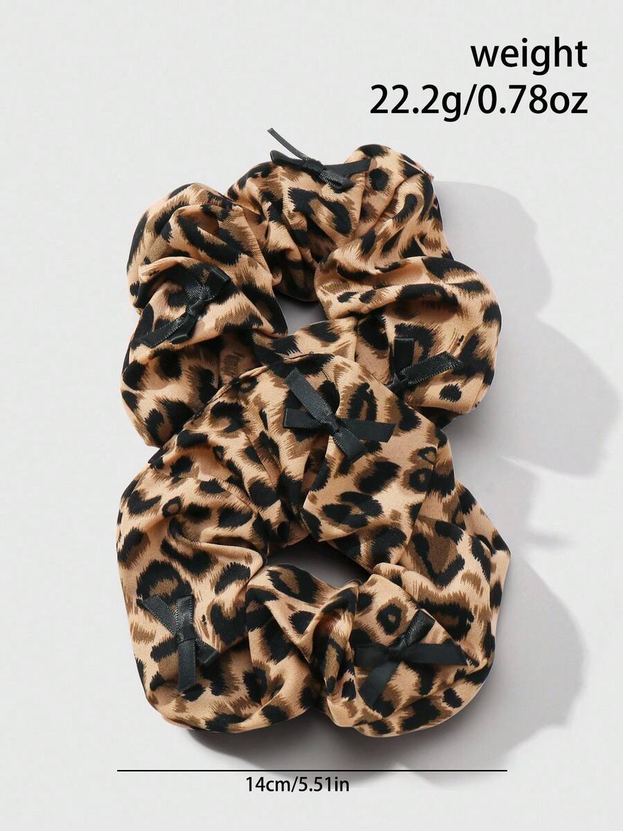Kawaii 2pcs Y2K Chic Retro Personalized High-End Brown Faux Leopard Print Ribbon Bow Hair Scrunchies Set, Suitable For Sisters And Friends Daily Wear, Holiday Gift