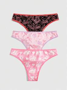 Kawaii 3pack Cartoon Graphic Contrast Binding Panty Set