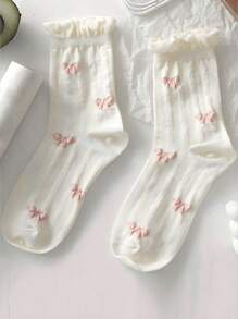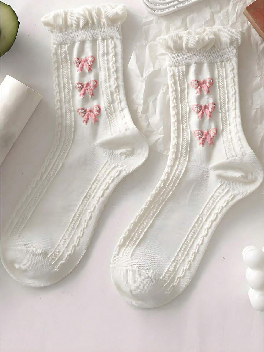 Kawaii 3pairs Women Random Bow Pattern Crew Socks