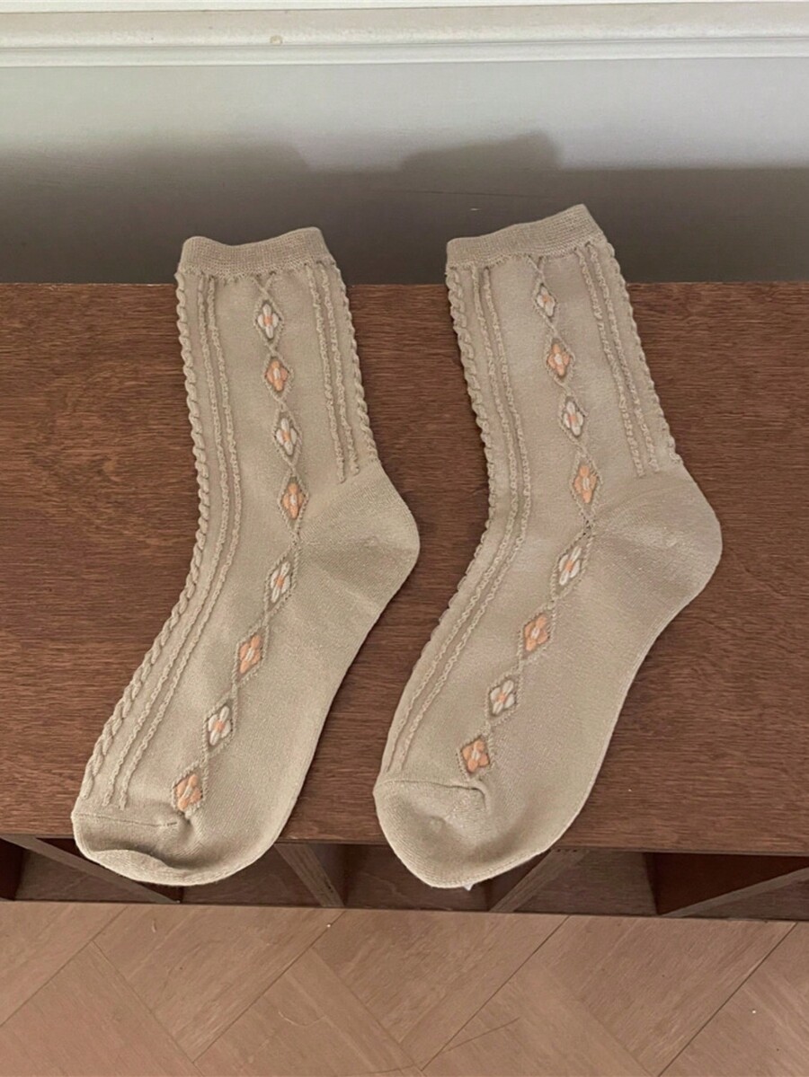 Kawaii 3pairs Women's Vintage Twisted Pattern Mid-calf Socks