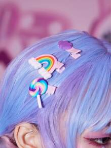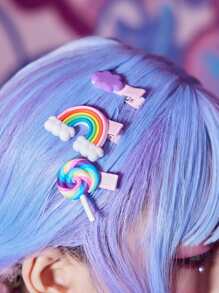 Kawaii 3pcs Rainbow & Lollipop Decor Alligator Hair Clip