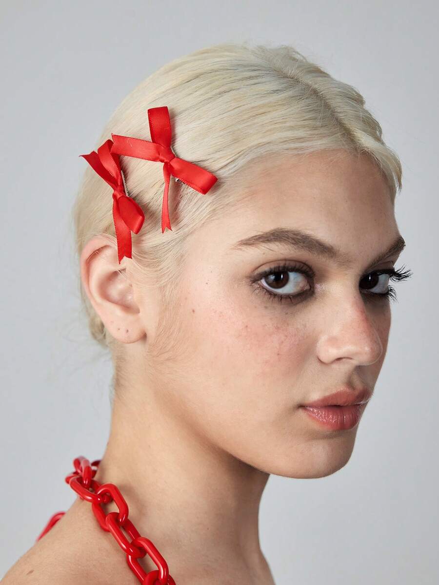 Kawaii 5pcs Large Red Bow Hair Clips, Cute Red Alligator Hair Clip Hair Accessories, Versatile Delicate Sweet Style Hair Clips Claw Clips Hair Slide Hair Barrettes