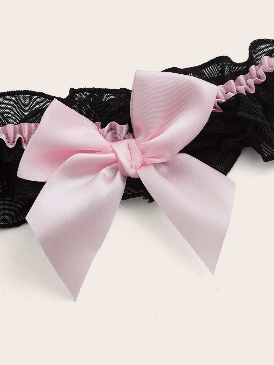 Kawaii 6pack Bow Front Mesh Garter Lingerie Set