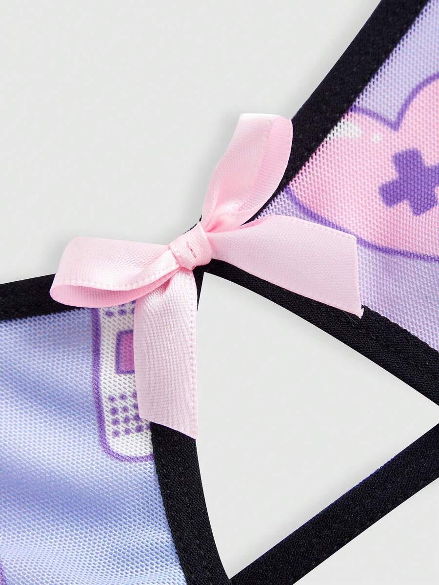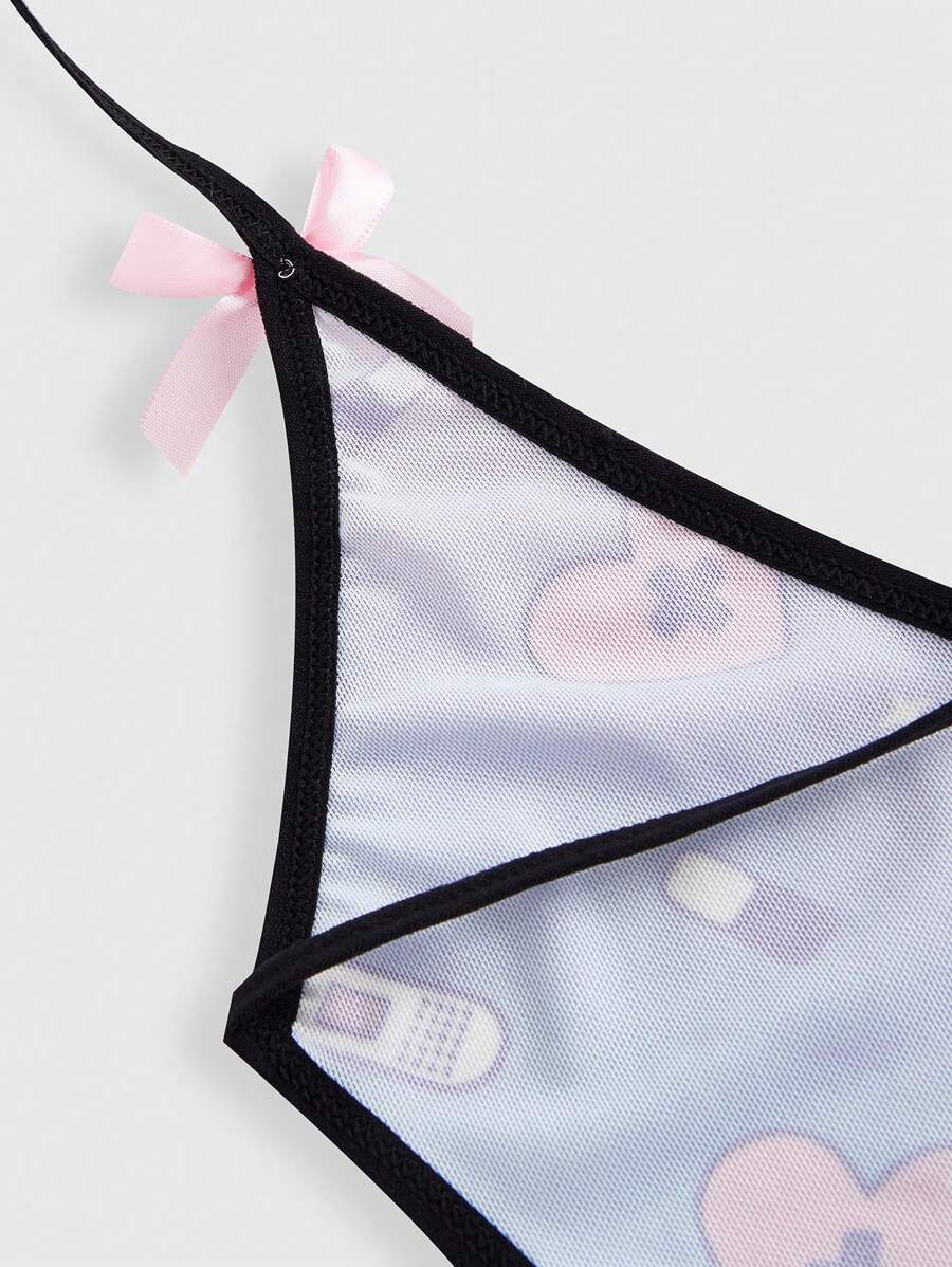 Kawaii Allover Heart Print Cut Out Tie Front Teddy Bodysuit