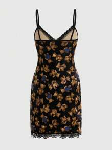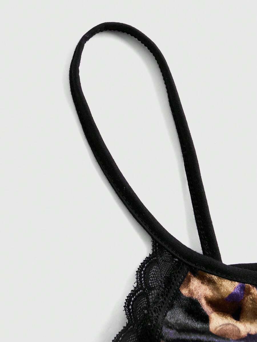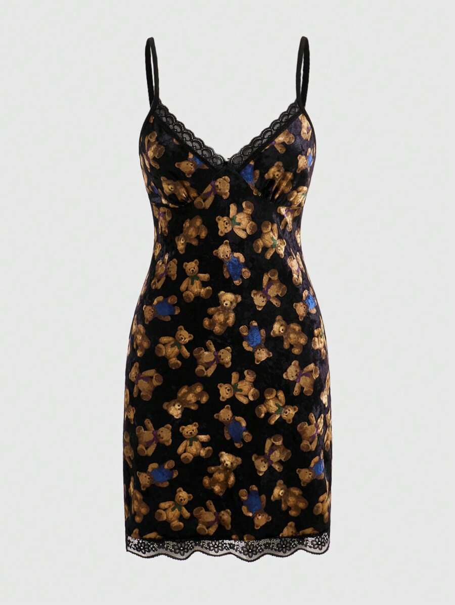 Kawaii Bear Print Contrast Lace Cami Nightdress