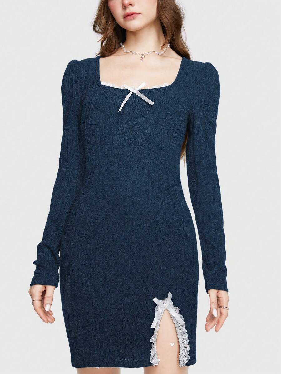 Kawaii Bowknot & Lace Decor Long Sleeve Dress