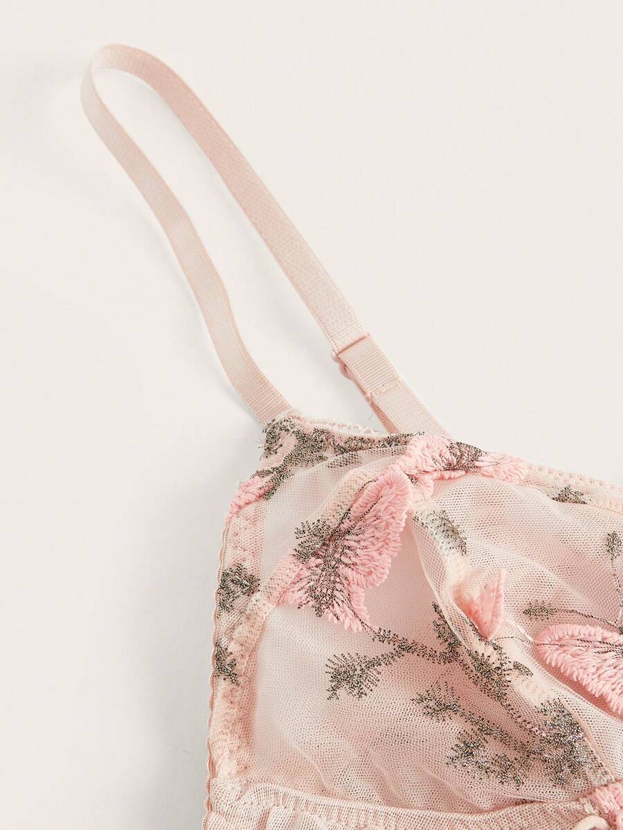 Kawaii Butterfly Embroidery Ruffle Trim Mesh Cami Bodysuit Lingerie