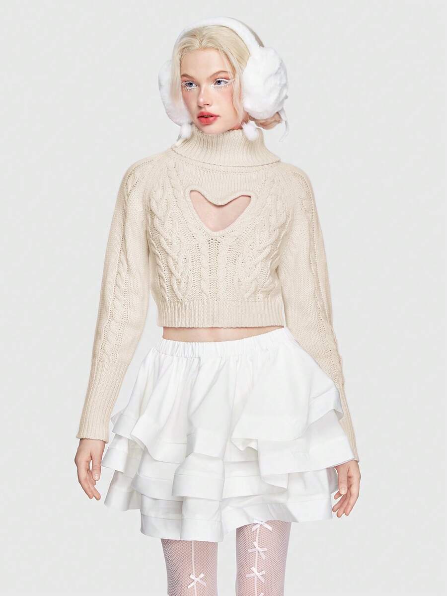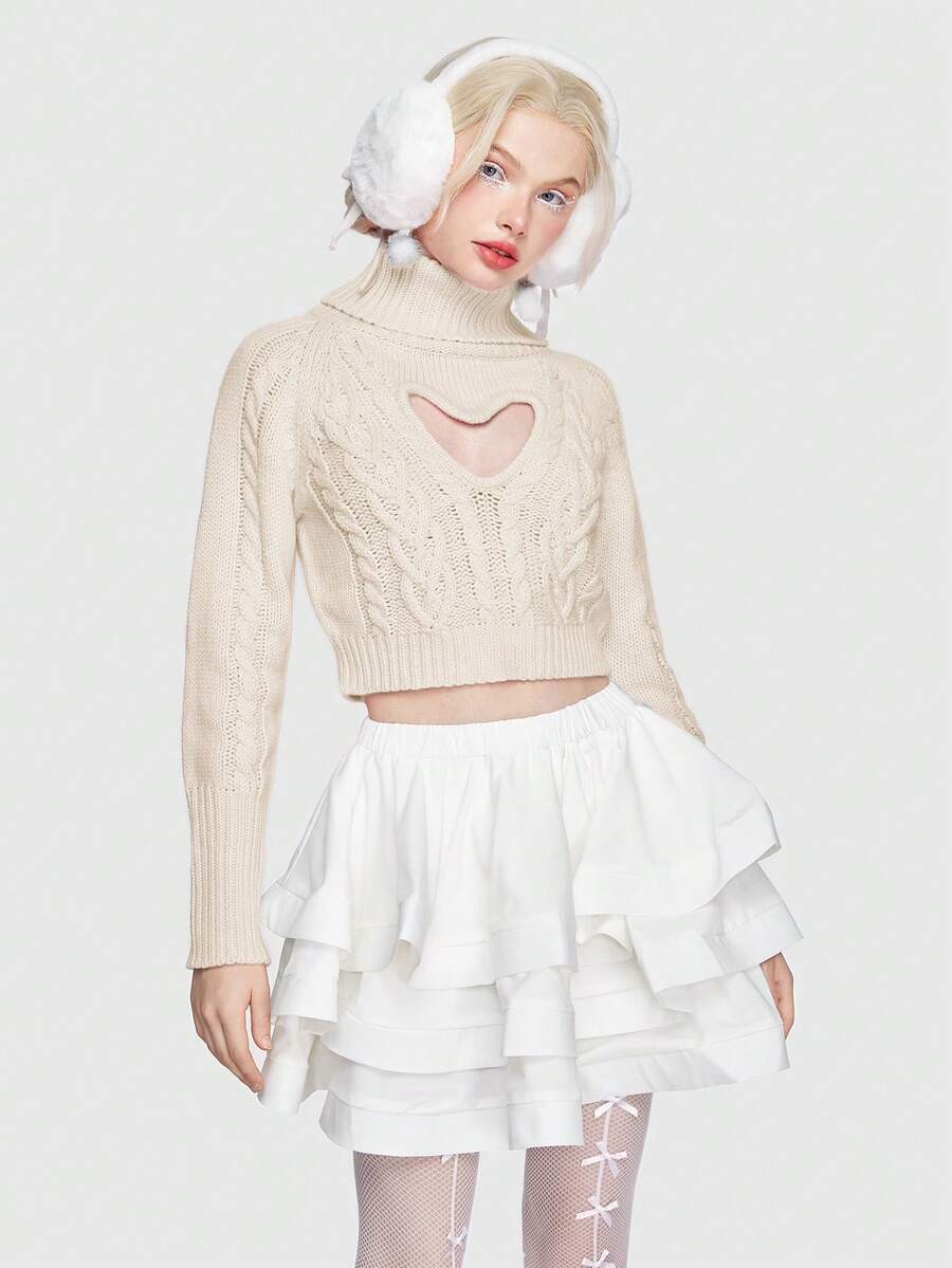 Kawaii Valentine'S Day Heart Hollow Out Knitted Sweater