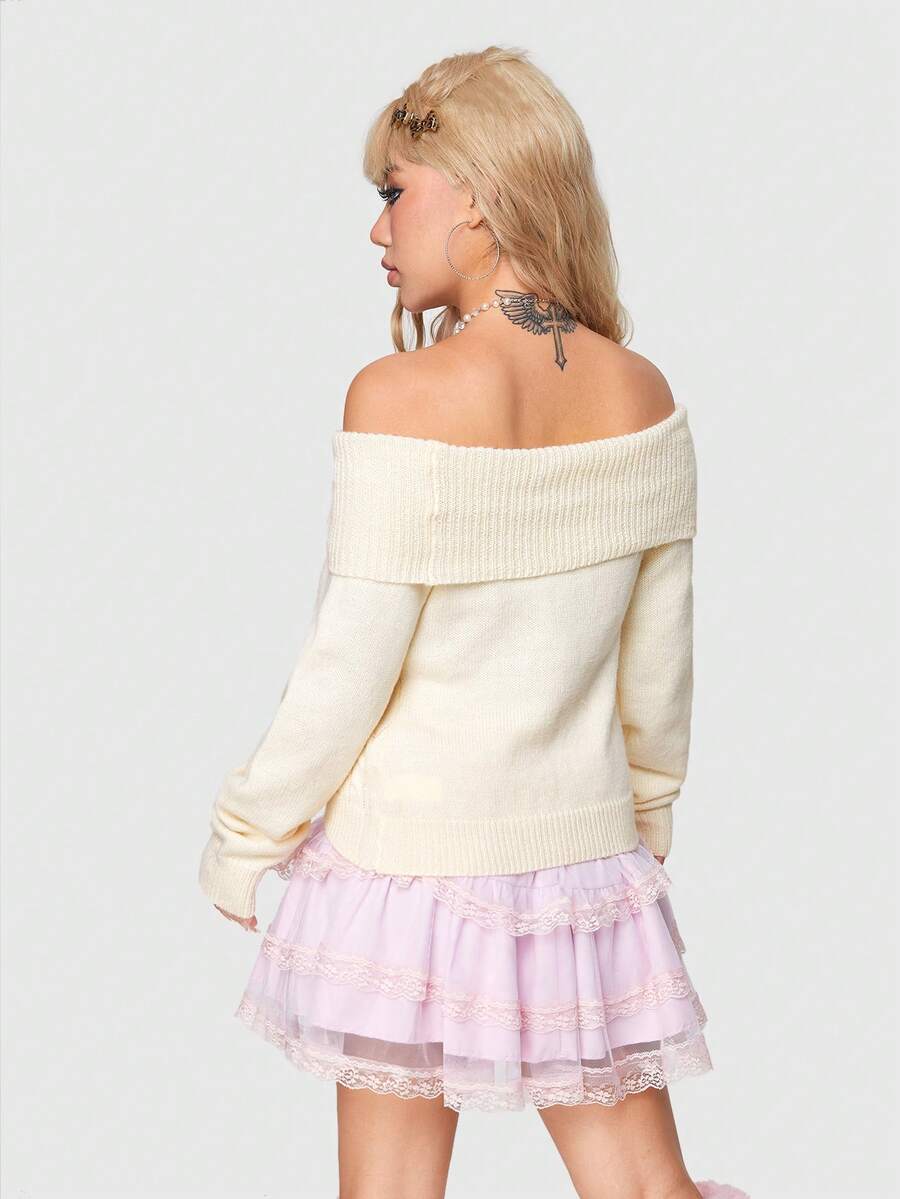 Kawaii Cable Knitted Off Shoulder Sweater, Pullover