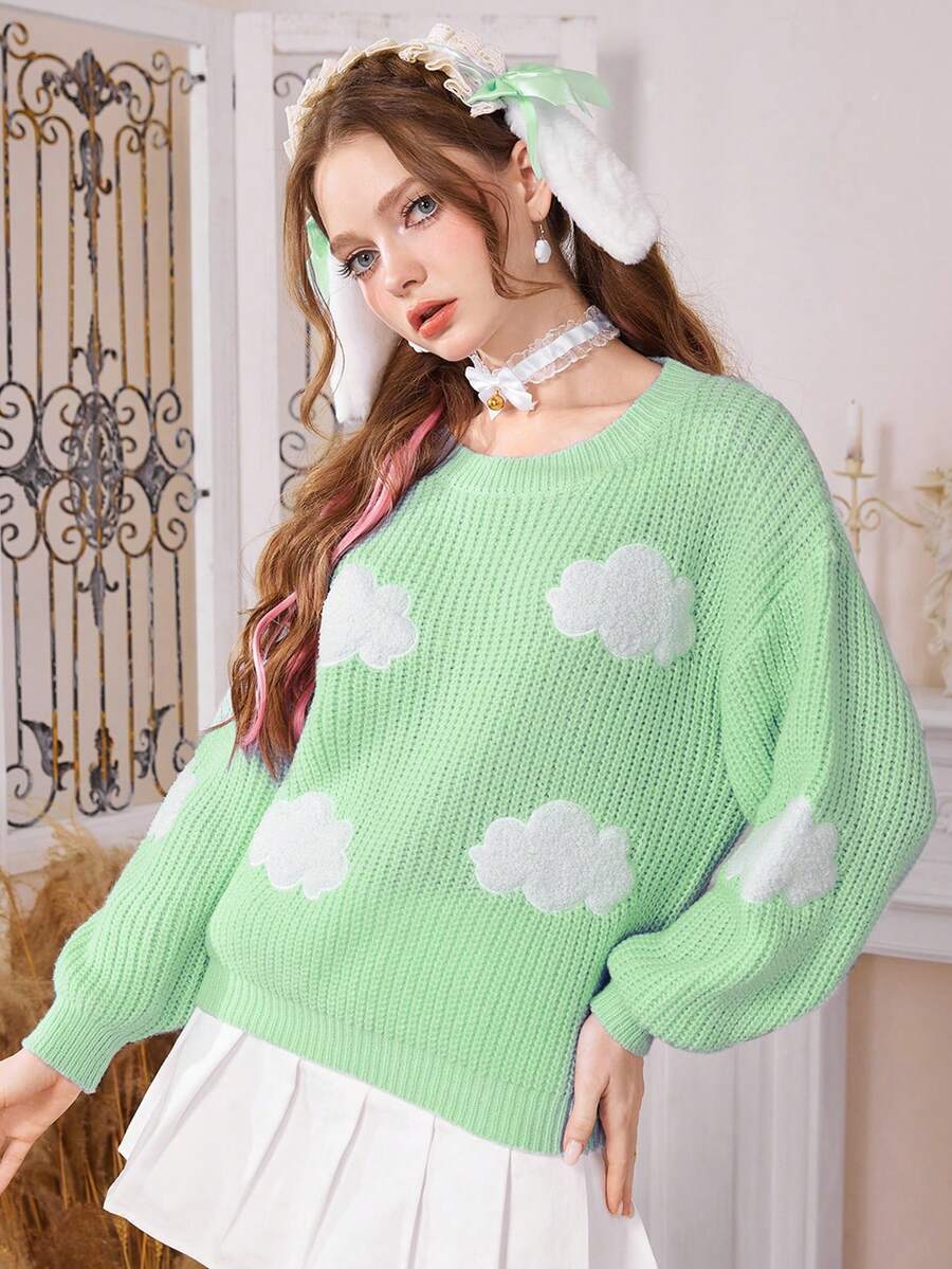 Kawaii Candy-colored Fresh And Lovely Cloud Pattern Sweater