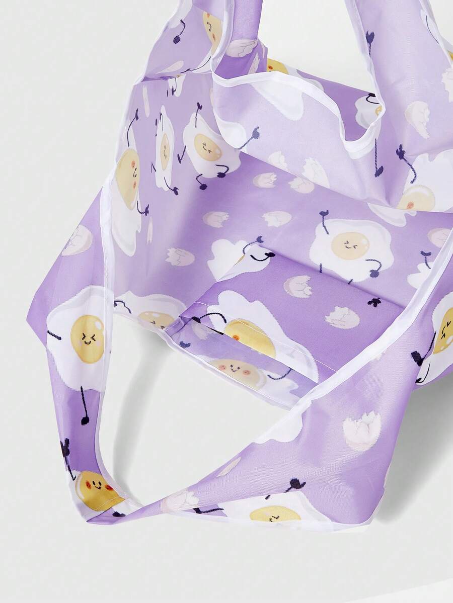 Kawaii Cartoon Fried Egg Pattern Shopper Bag