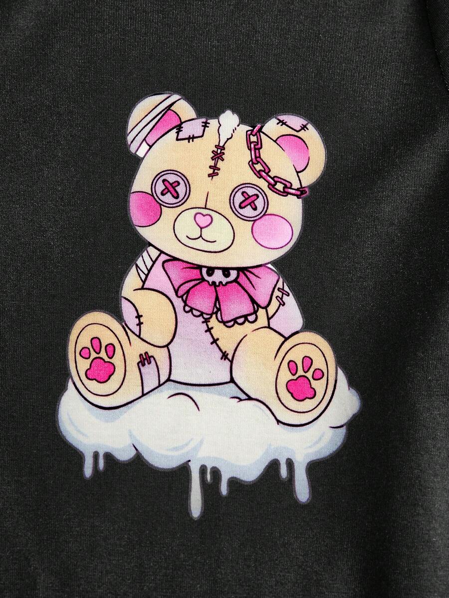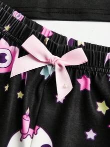 Kawaii Cartoon Graphic Contrast Lace PJ Set
