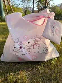 Kawaii Cartoon Rabbit Print Shopper Bag