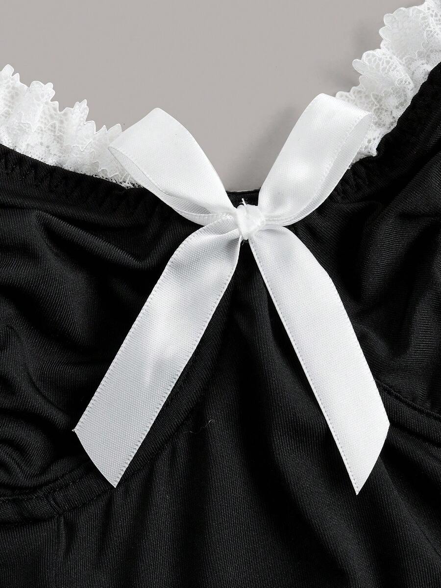 Kawaii Contrast Lace Bow Decor Ruched Bust Top