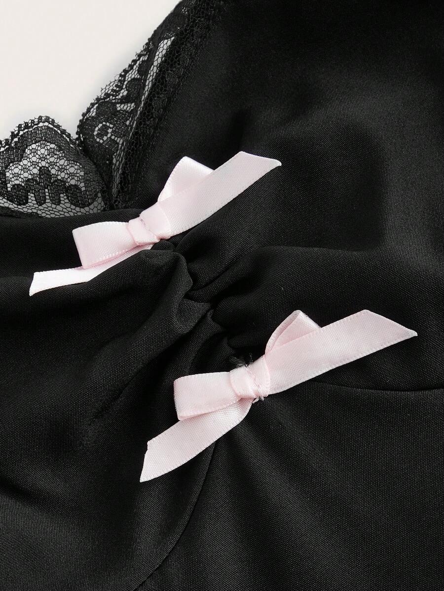 Kawaii Contrast Lace Cold Shoulder Bow Decor Flare Sleeve Dress