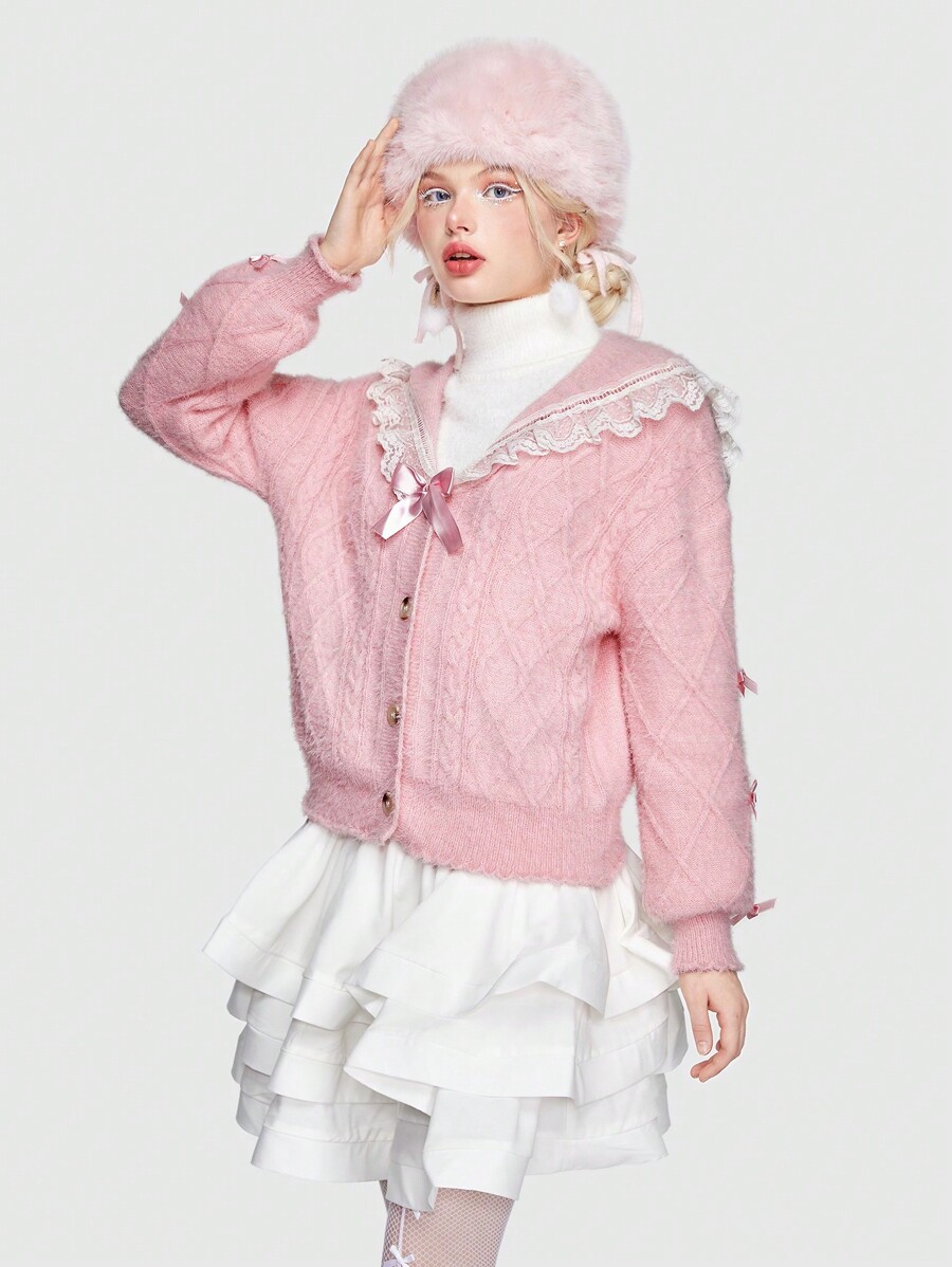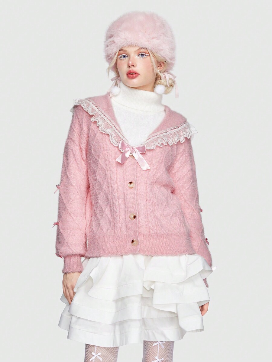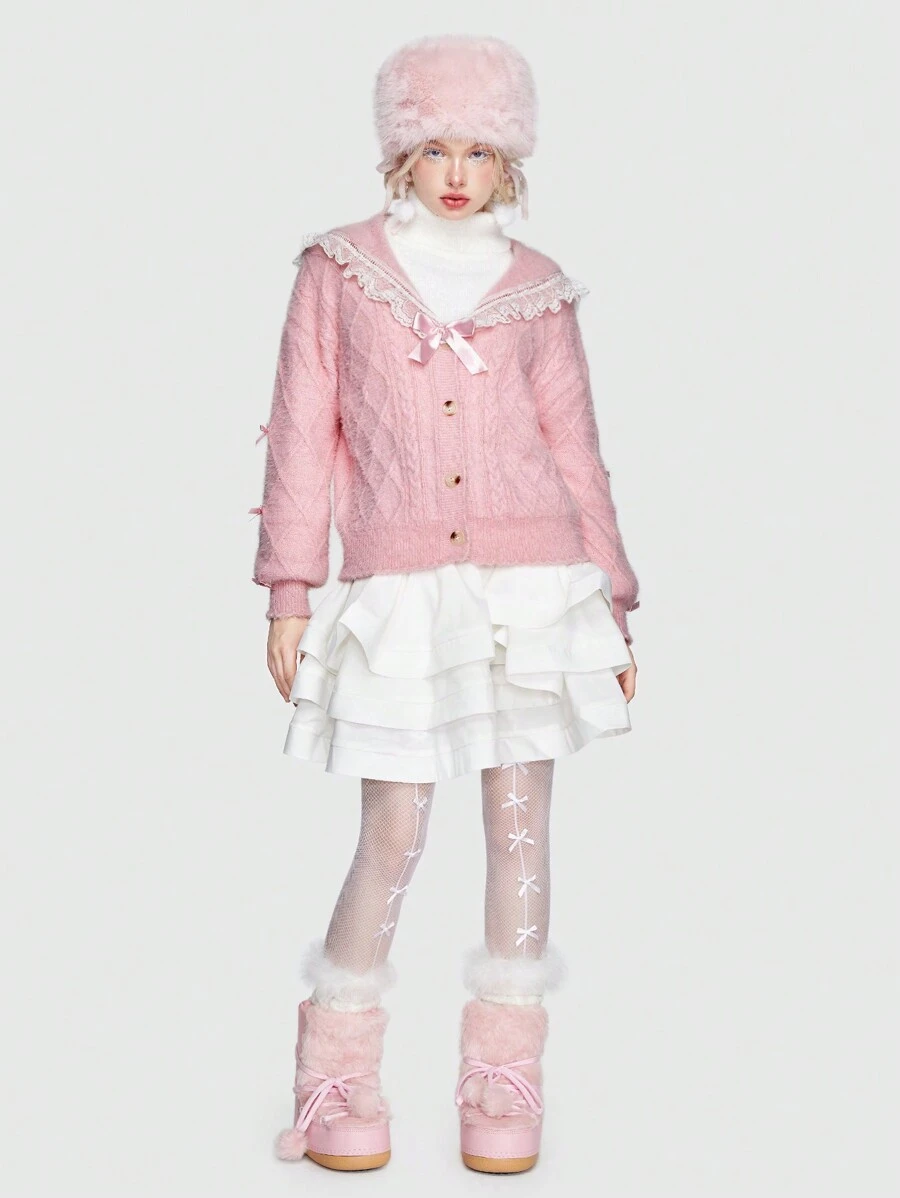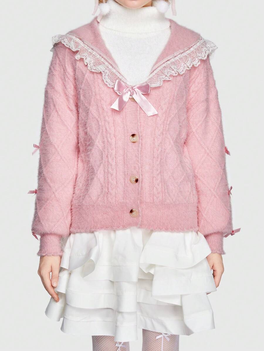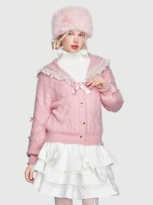 Kawaii Contrast Lace Sailor Collar Cardigan