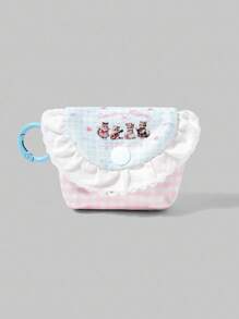 Kawaii Cute Cat Band Print White Lace Portable Mini Coin Pouch Earphone Case Accessory