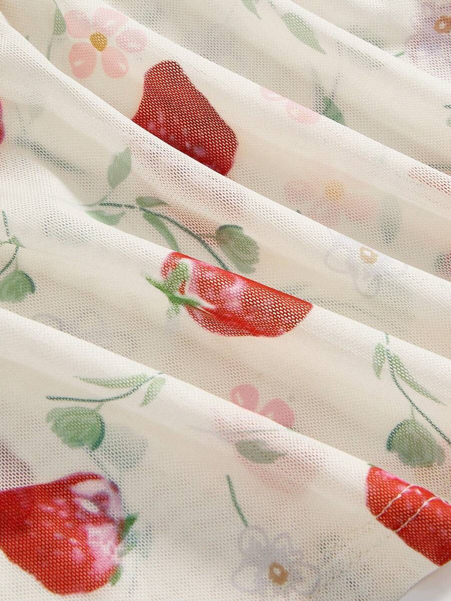 Kawaii Cute Strawberry Print Mesh Camisole