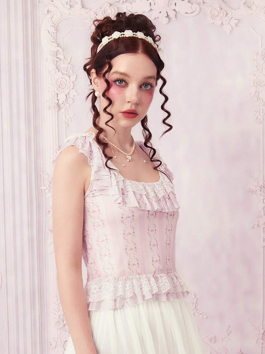 Kawaii Ditsy Floral Print Ruffle Hem Top