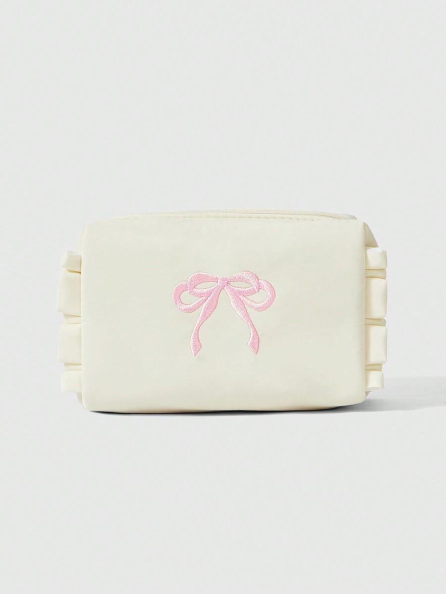 Kawaii Embroidered Cosmetic Bag With Bowknot For Storing Coins