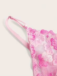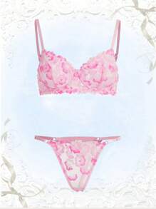 Kawaii Floral Embroidery Mesh Underwire Lingerie Set