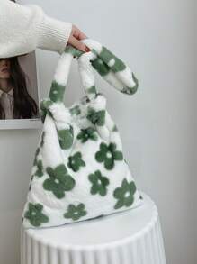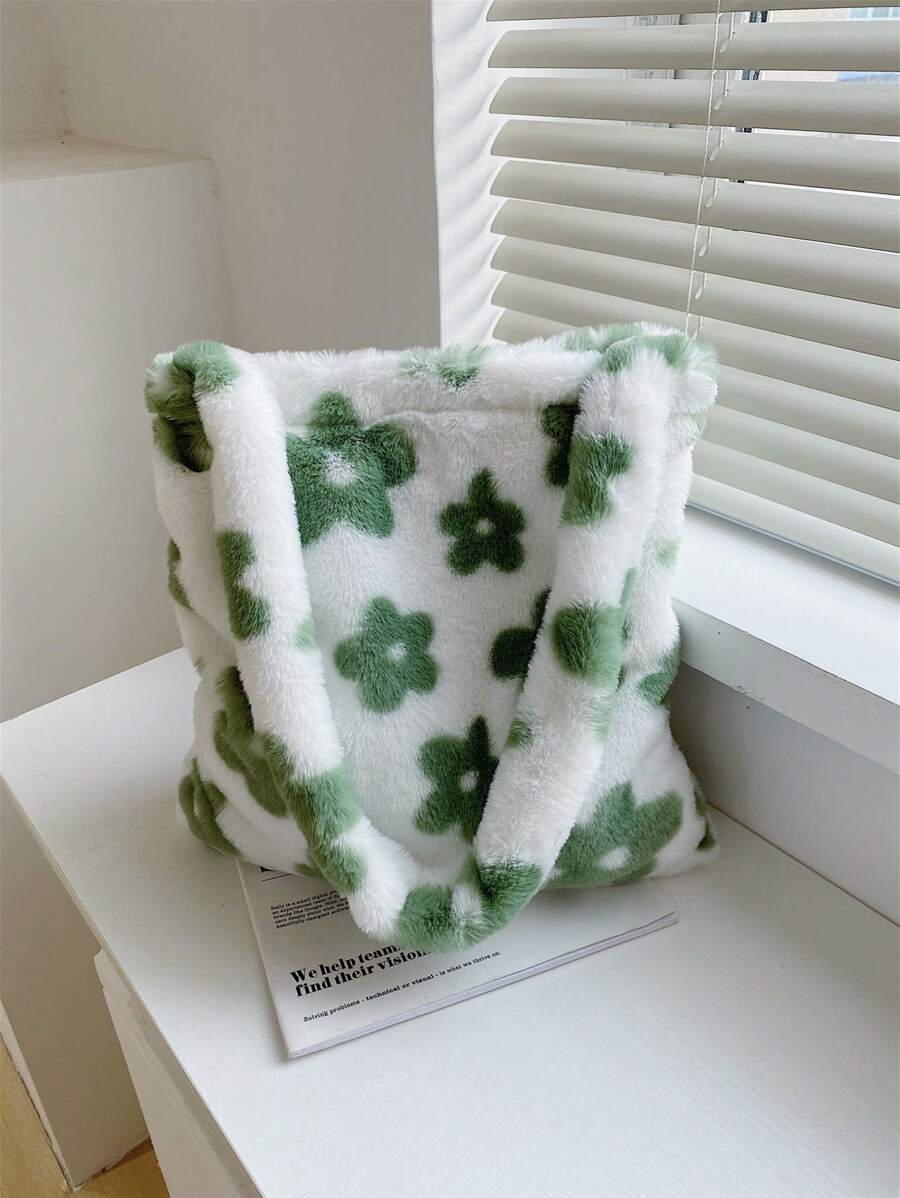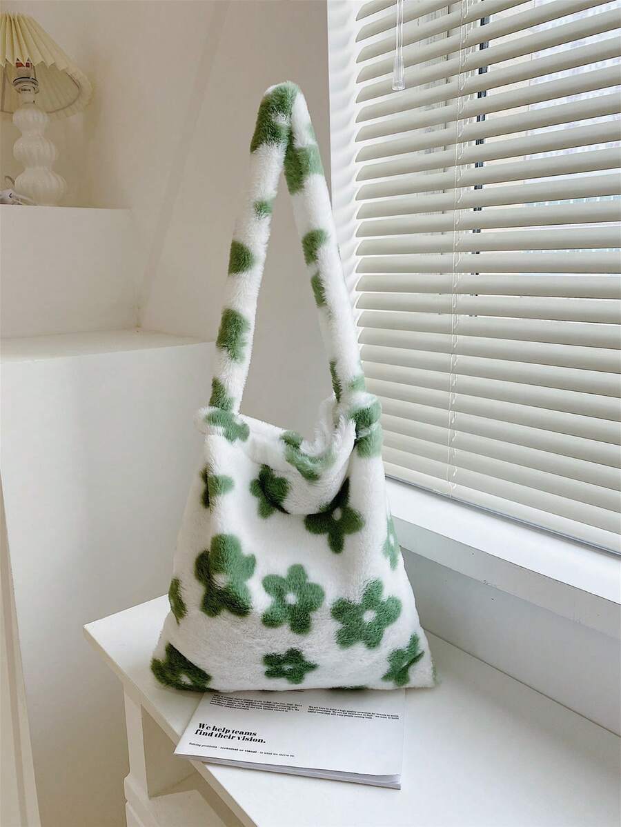 Kawaii Floral Graphic Fluffy Shoulder Bag