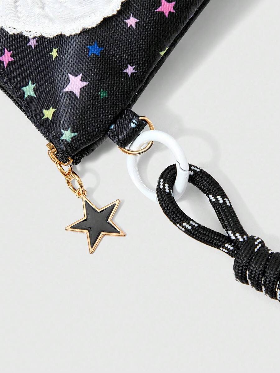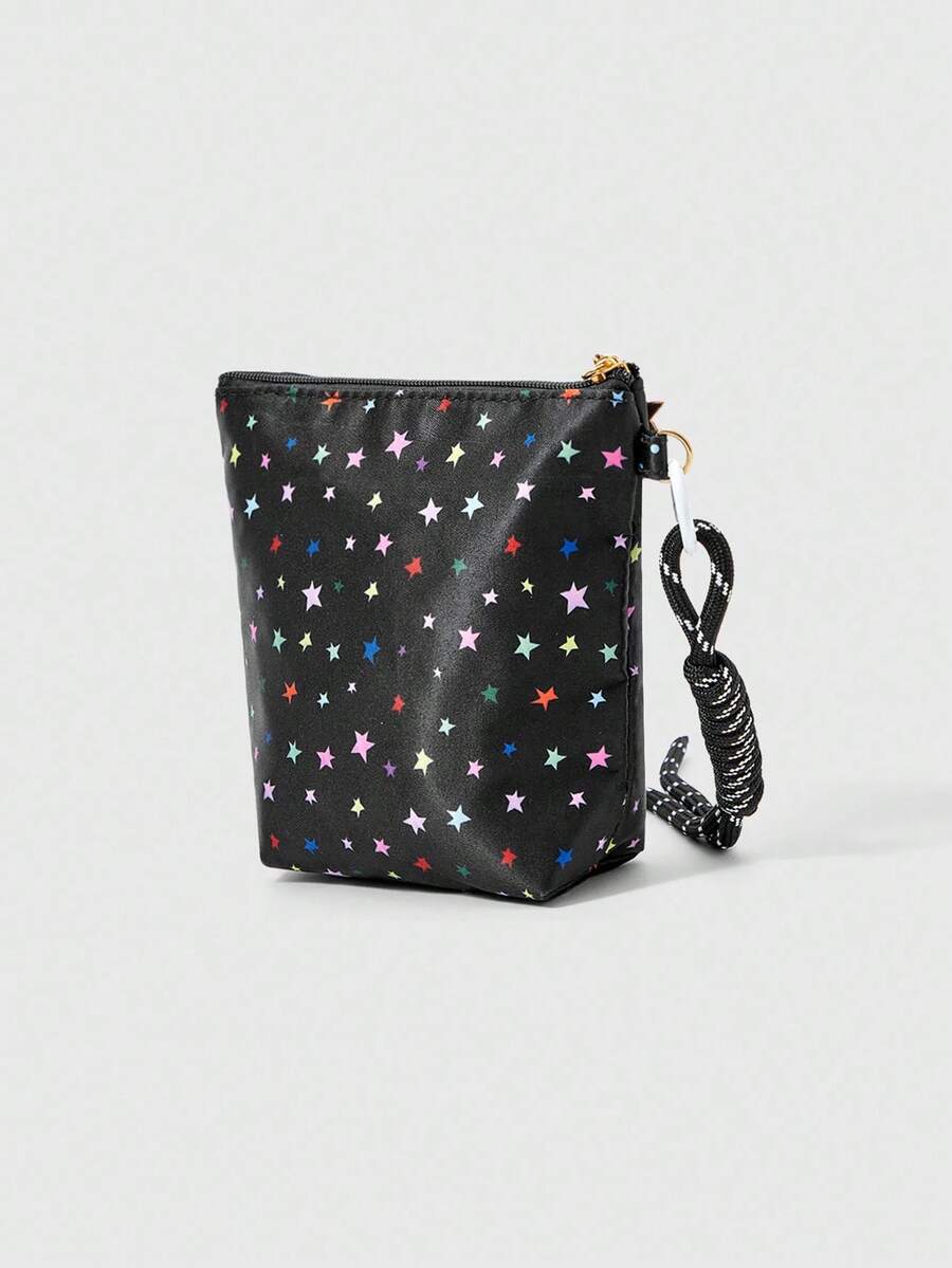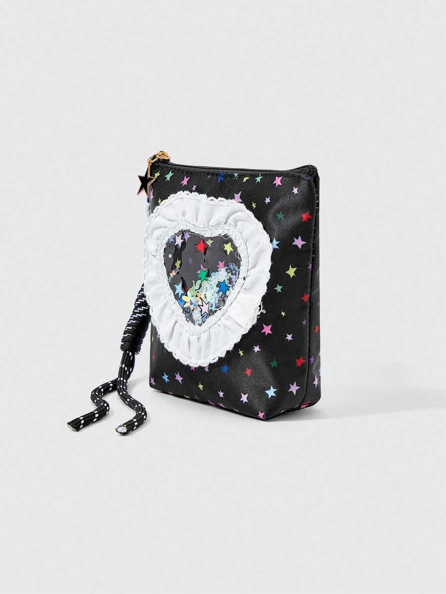 Kawaii Floral Lace Colorful Star Pattern Trapezoid Large Capacity Portable Cosmetic Bag, Item #1481690