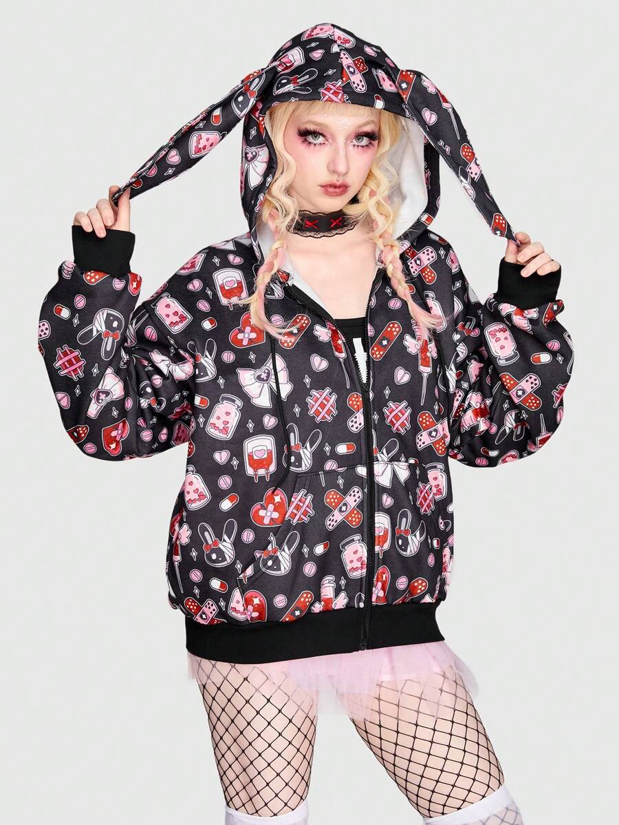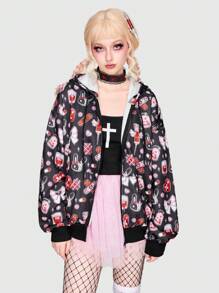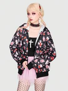 Kawaii Graphic Print Zip Up Hoodie