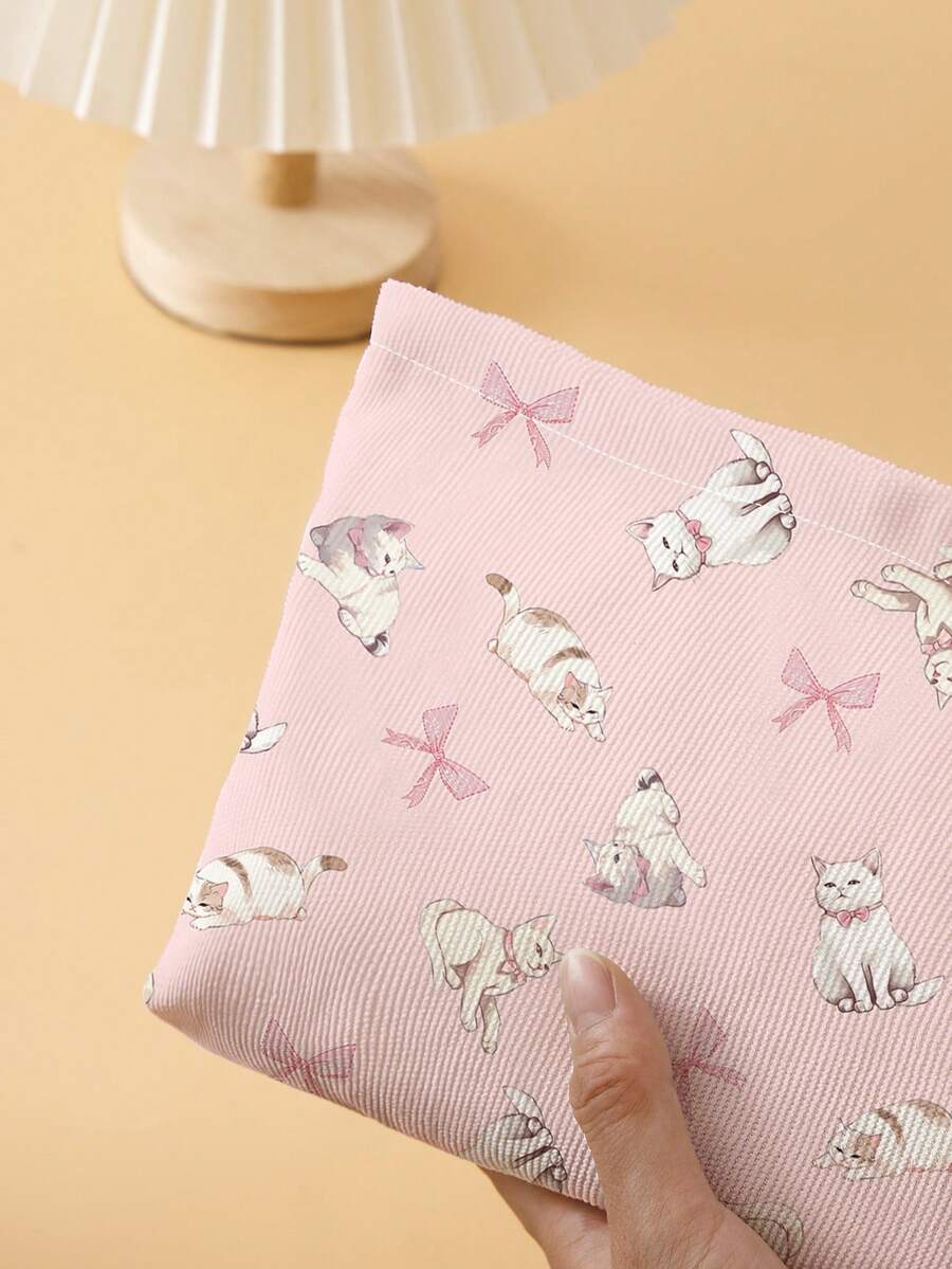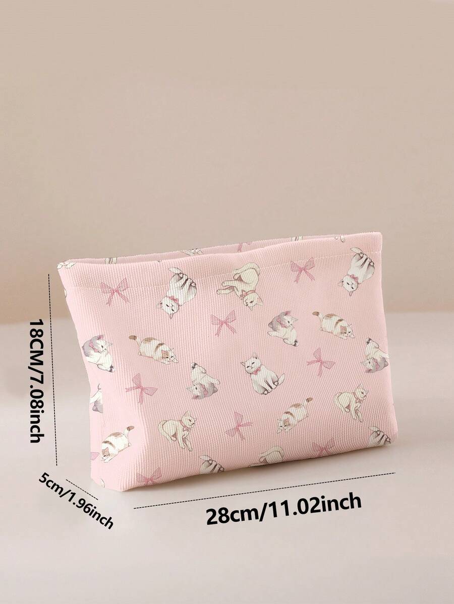 Kawaii Hand-painted Cat Pattern Double-sided Printed Corduroy Makeup Bag