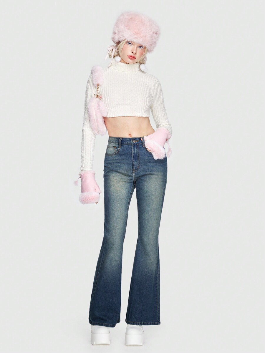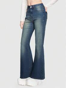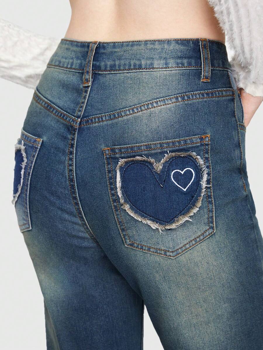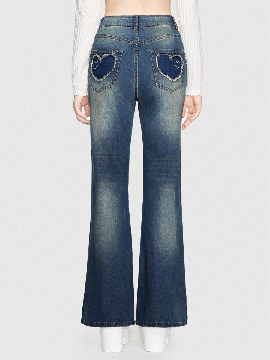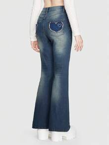 Kawaii Heart Patched Flare Leg Jeans
