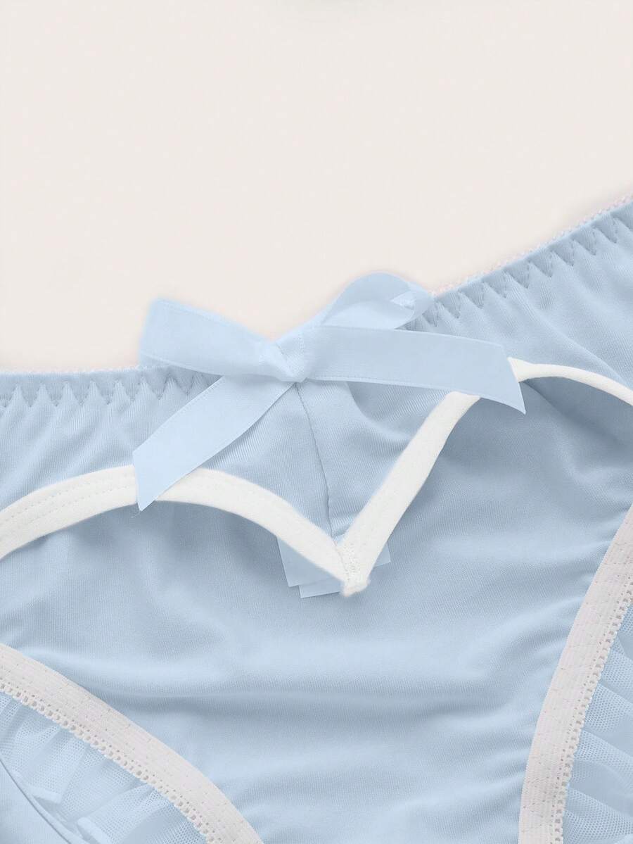 Kawaii Hollow Heart Shaped Lace Trim Bowknot Decor Mesh Panties