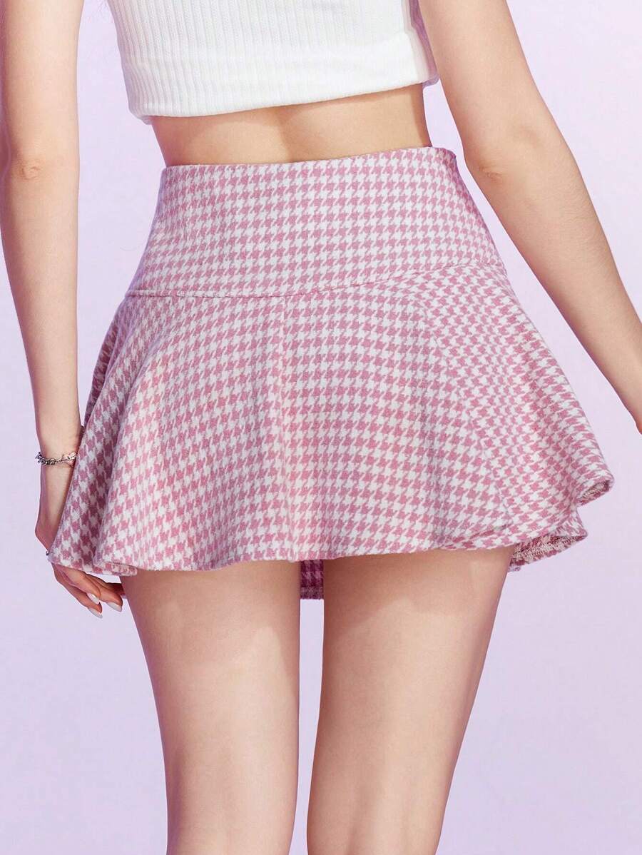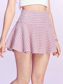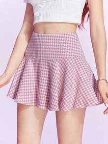 Kawaii Houndstooth Print Flare Hem Skirt