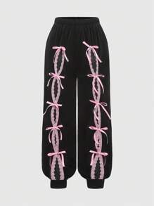 Kawaii Lace Patchwork Hollow Out Bow Lantern Pants