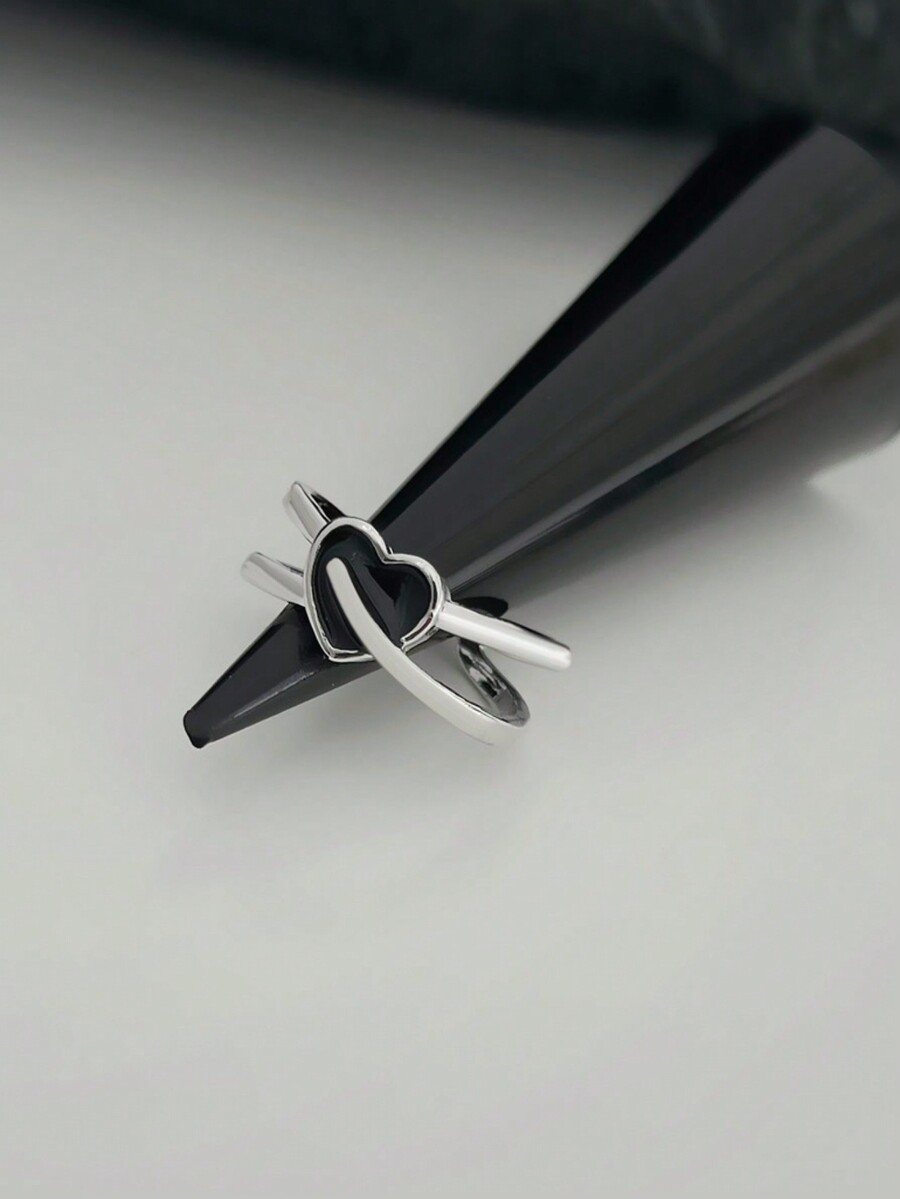Kawaii Korean Style Fashionable Heart Hollow Out Ring Simple & Vintage Painted Cupid Arrow Split Double Heart Shaped Ring