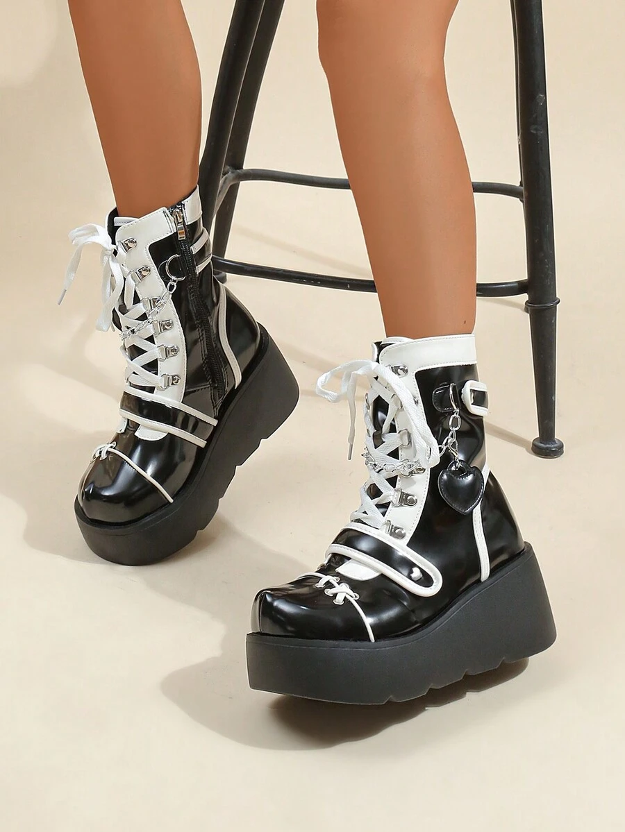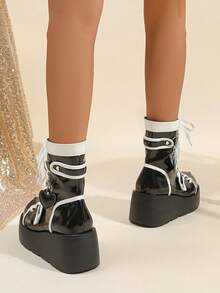 Kawaii Ladies 2023 New Arrival Hip-hop Punk Black Round Toe Chunky Combat Ankle Boots
