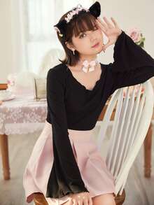 Kawaii Lettuce Trim Bell Sleeve Rib-knit Tee