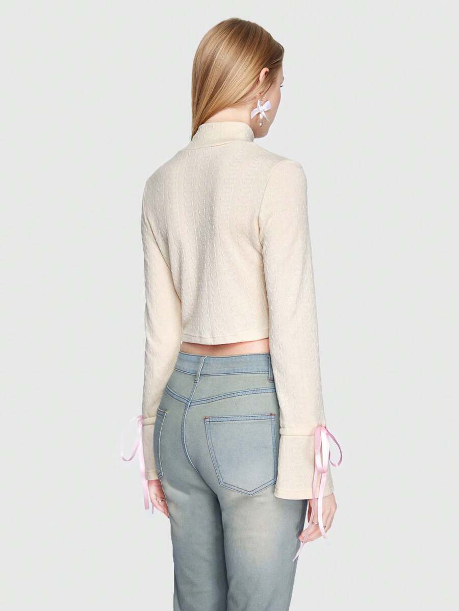 Kawaii Mock Neck Knot Detail Crop Tee