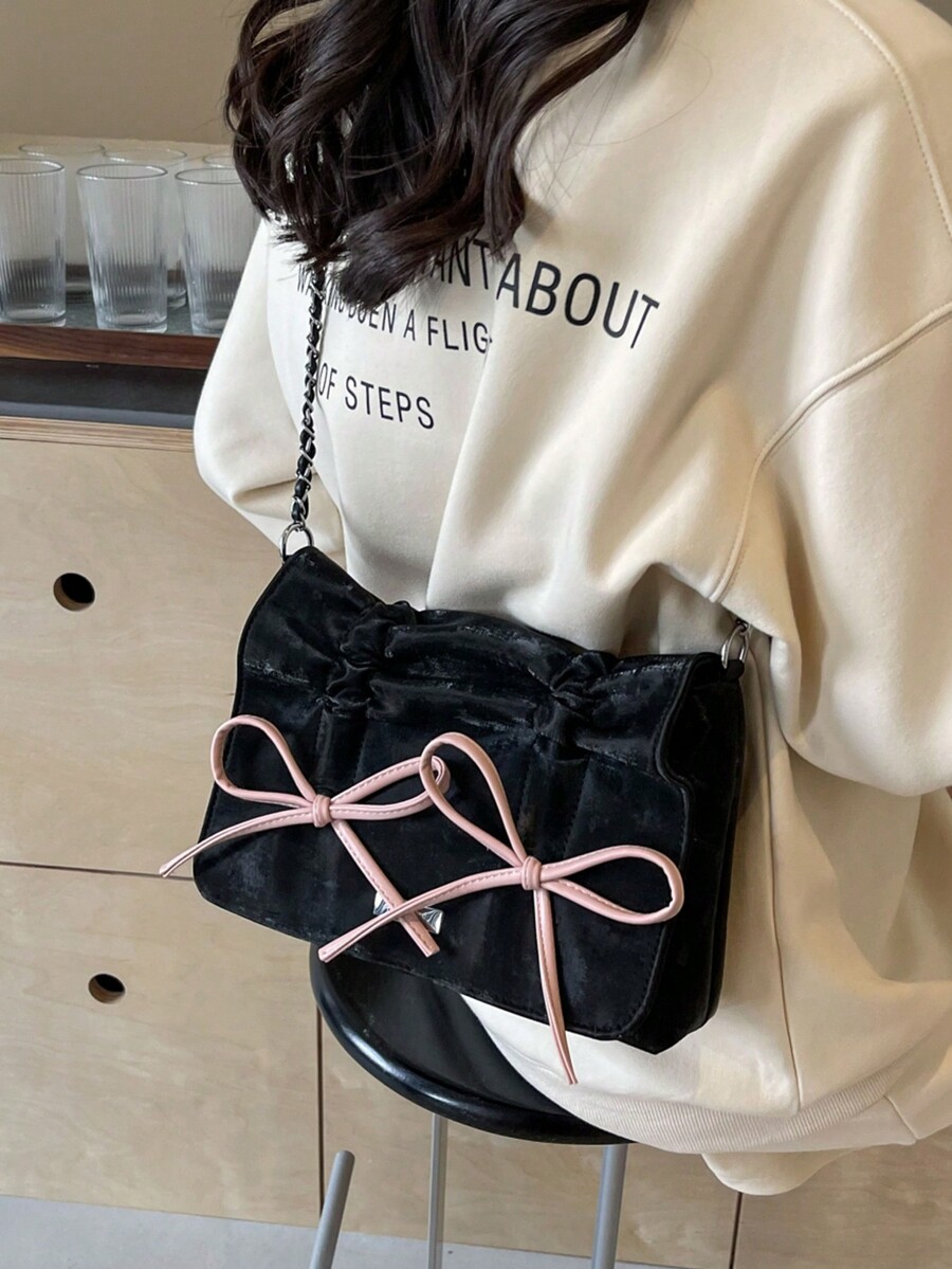 Kawaii New Fashion Women Bag, Ladies Shoulder Bag, Cute Bowknot Crossbody Bag, Gothic Armpit Shoulder Bag For Girls