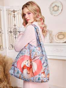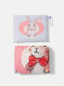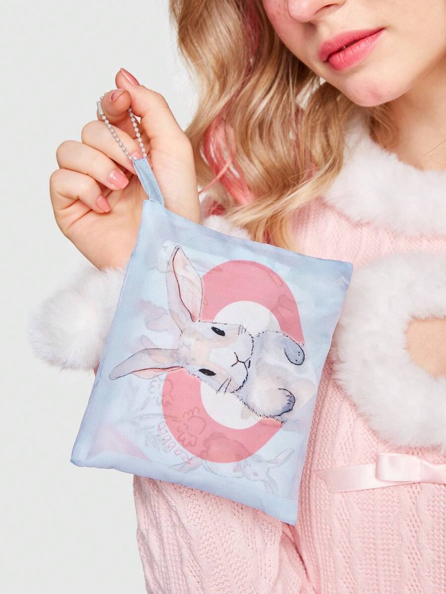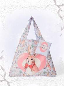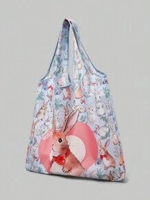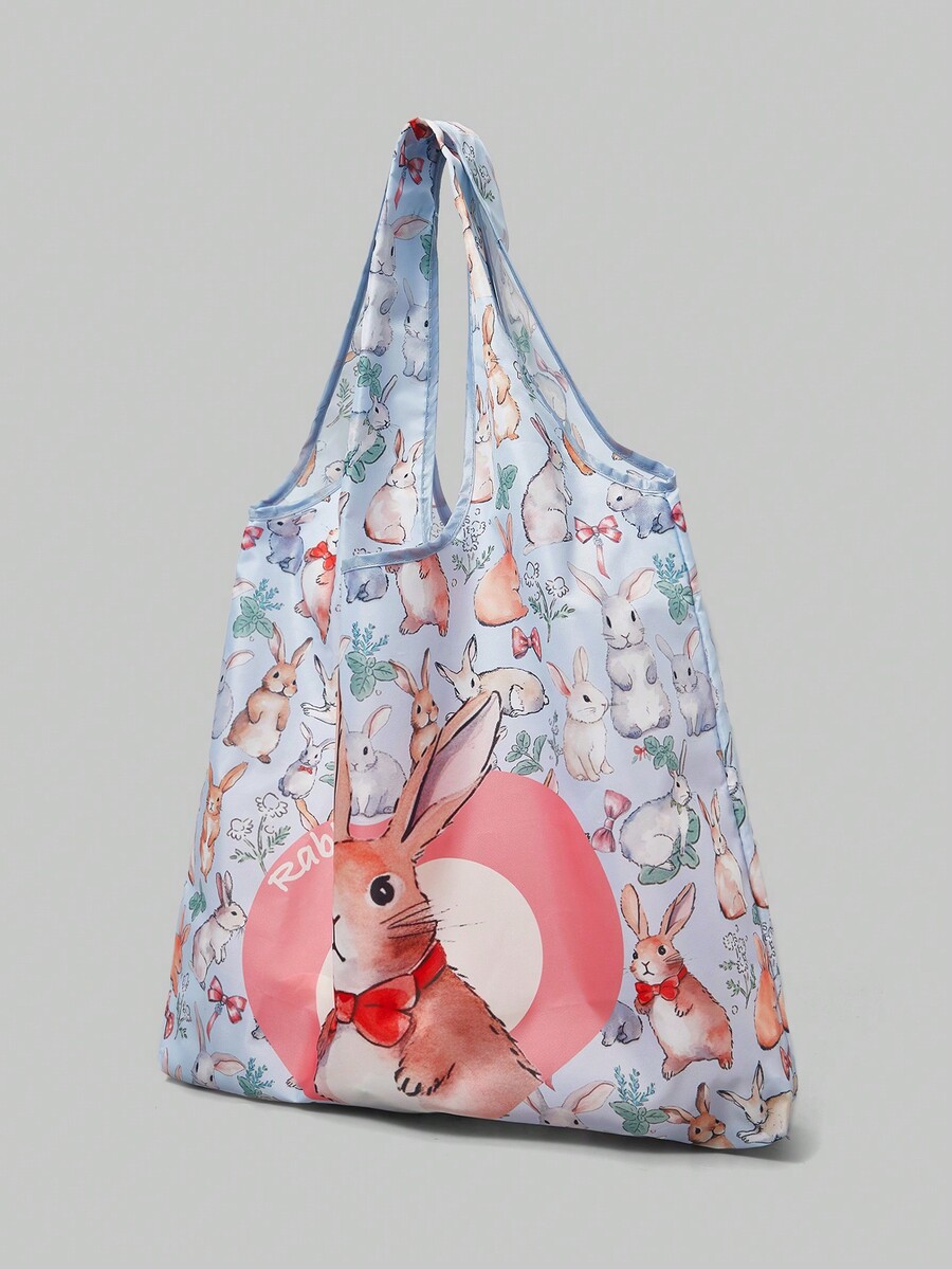 Kawaii Oversized Shopper Bag Cute Letter Rabbit Print For Shopping