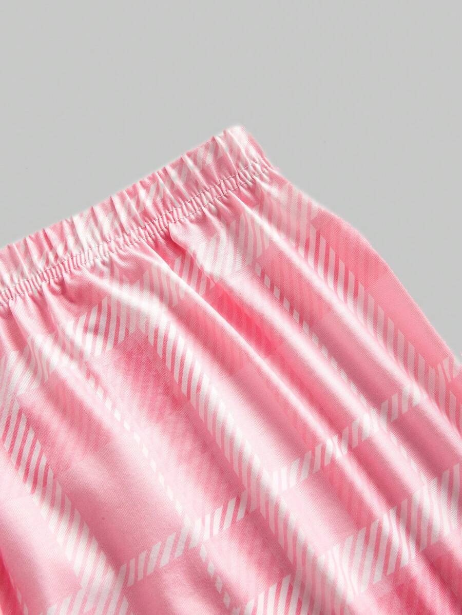 Kawaii Plus Animal and Letter Graphic Lettuce Trim Cami Top & Plaid Shorts PJ Set