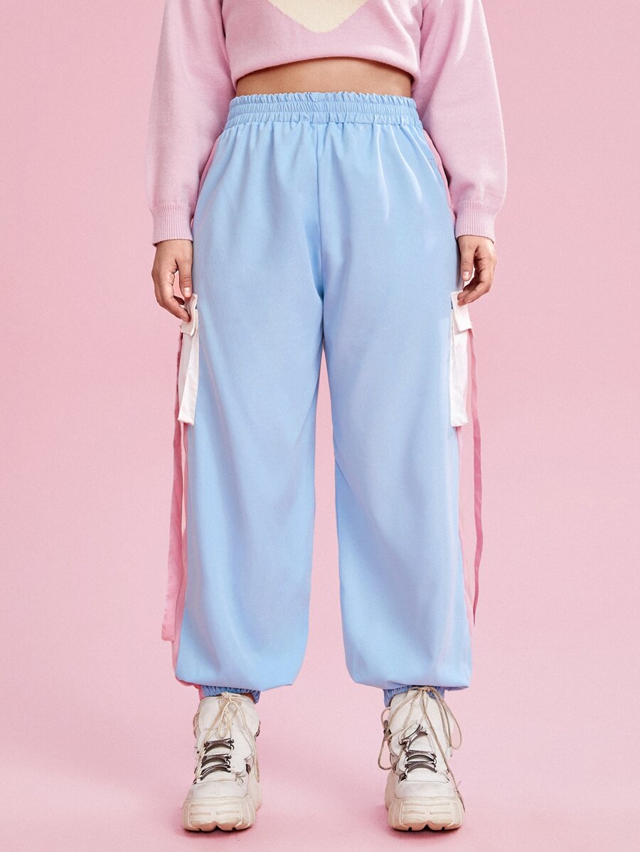 Kawaii Plus Colourblock Flap Pocket Cargo Trousers