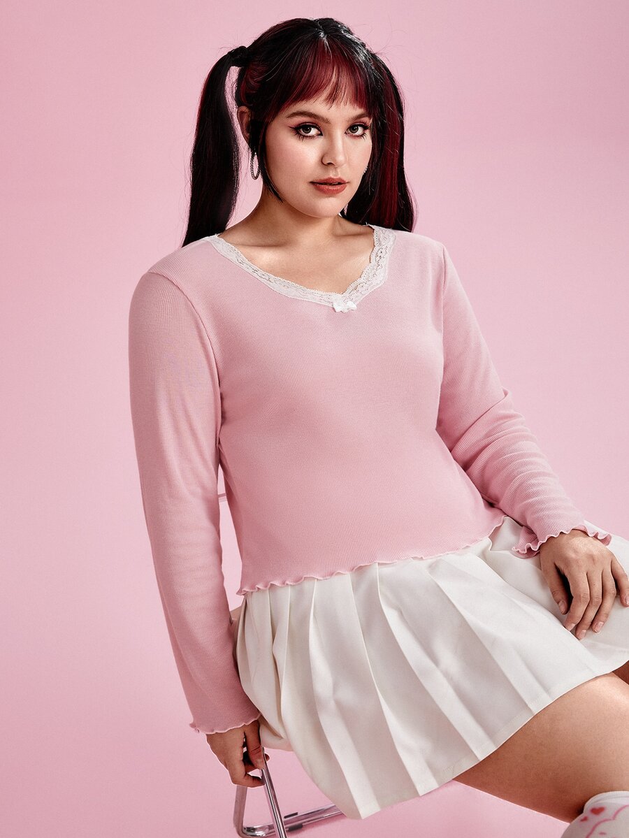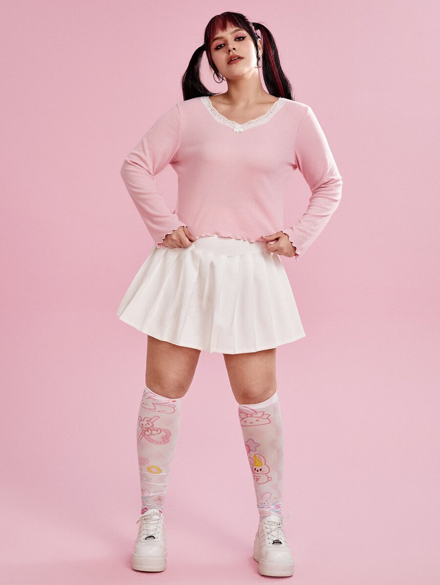 Kawaii Plus Lace Trim Lettuce Trim Tee