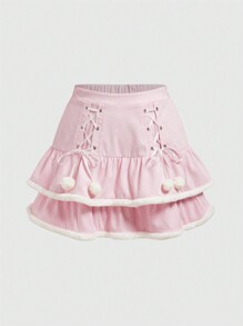 Kawaii Plus Size Corduroy Skirt With Pom Pom Decoration
