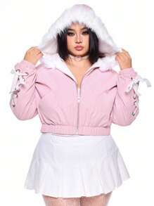 Kawaii Plus Size Cute Furry-Lined Ribbon Decor Jacket Outerwear
