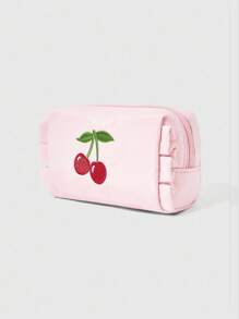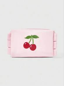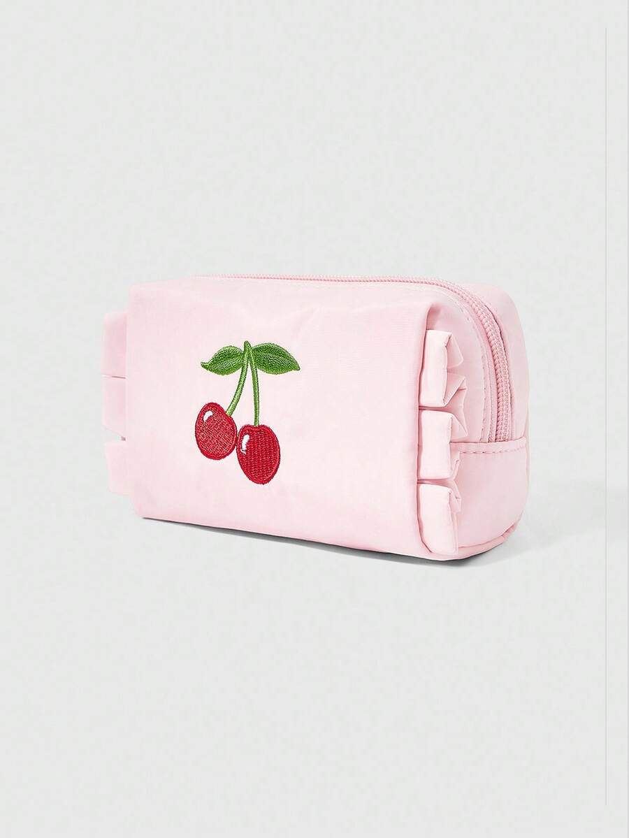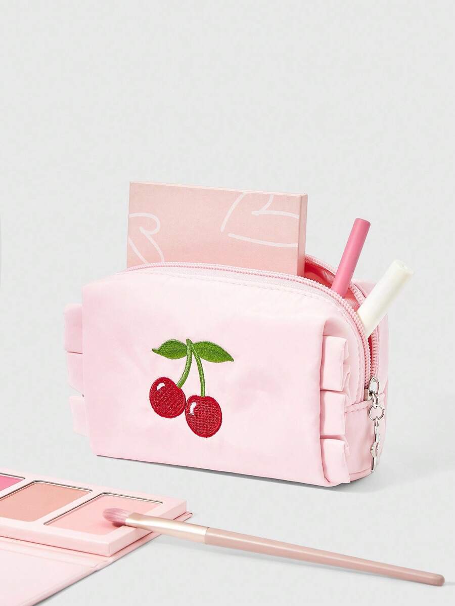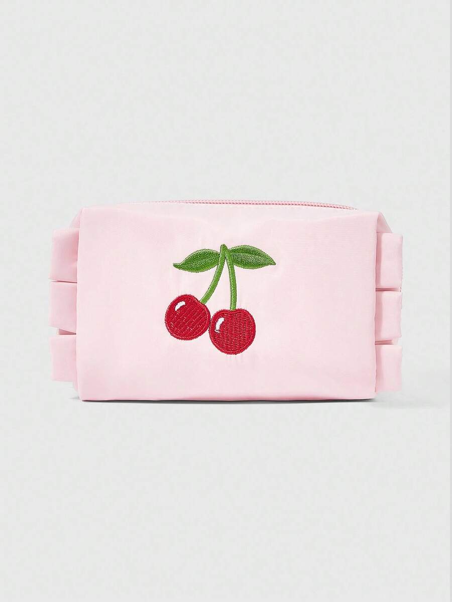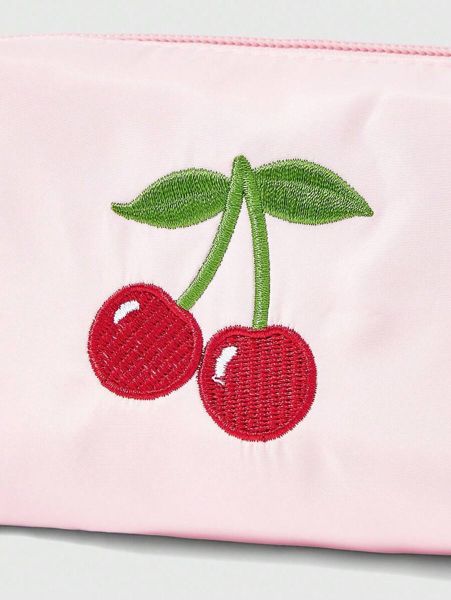 Kawaii Portable Cherry Embroidery Cute Cosmetic Bag, Pink