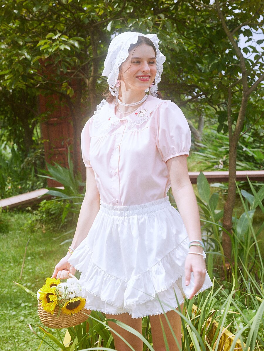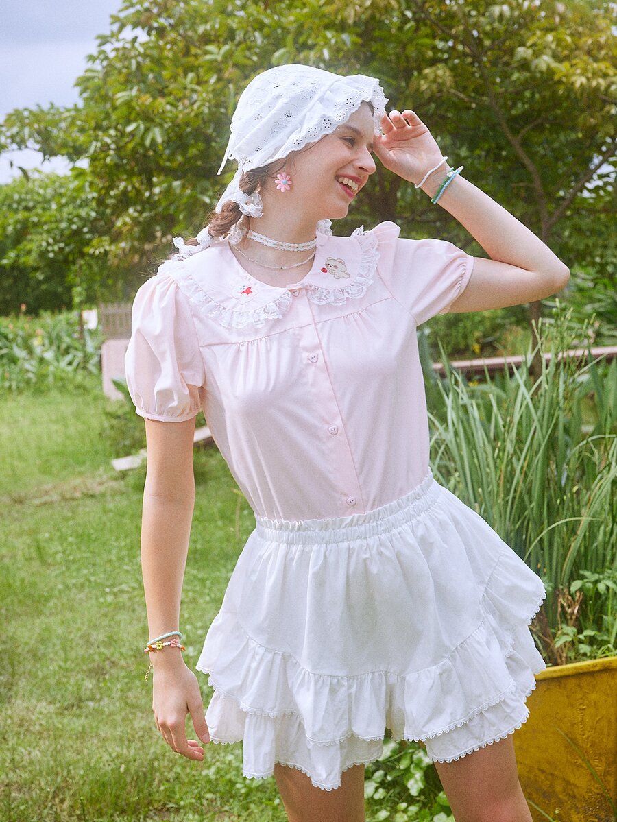 Kawaii Rabbit Embroidery Contrast Lace Shirt