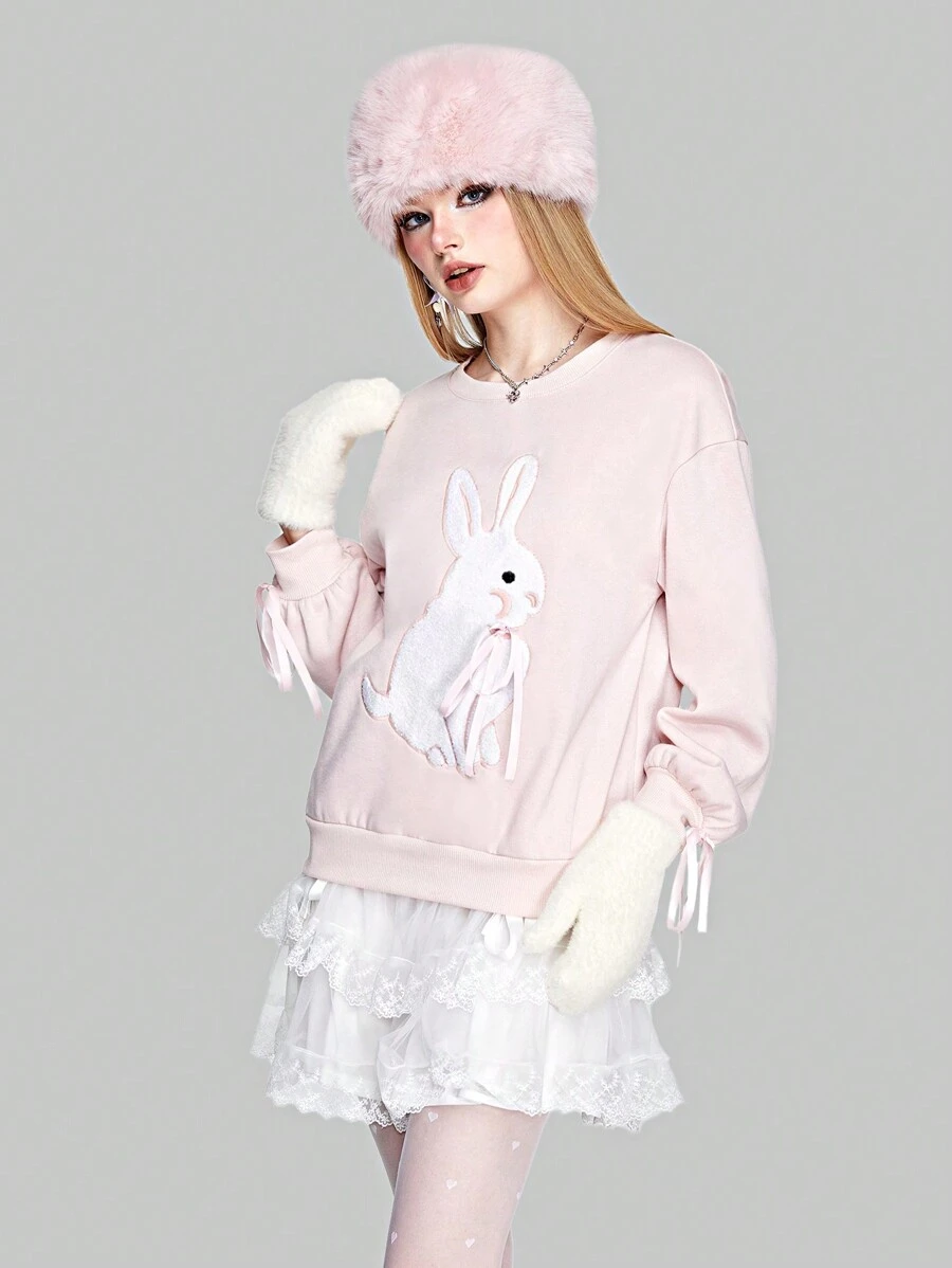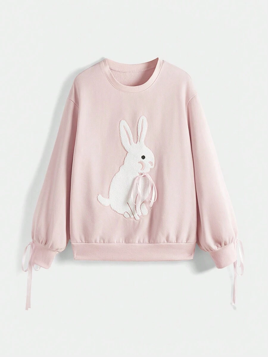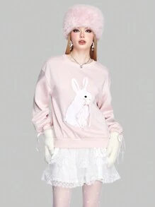 Kawaii Rabbit Embroidery Drop Shoulder Sweatshirt