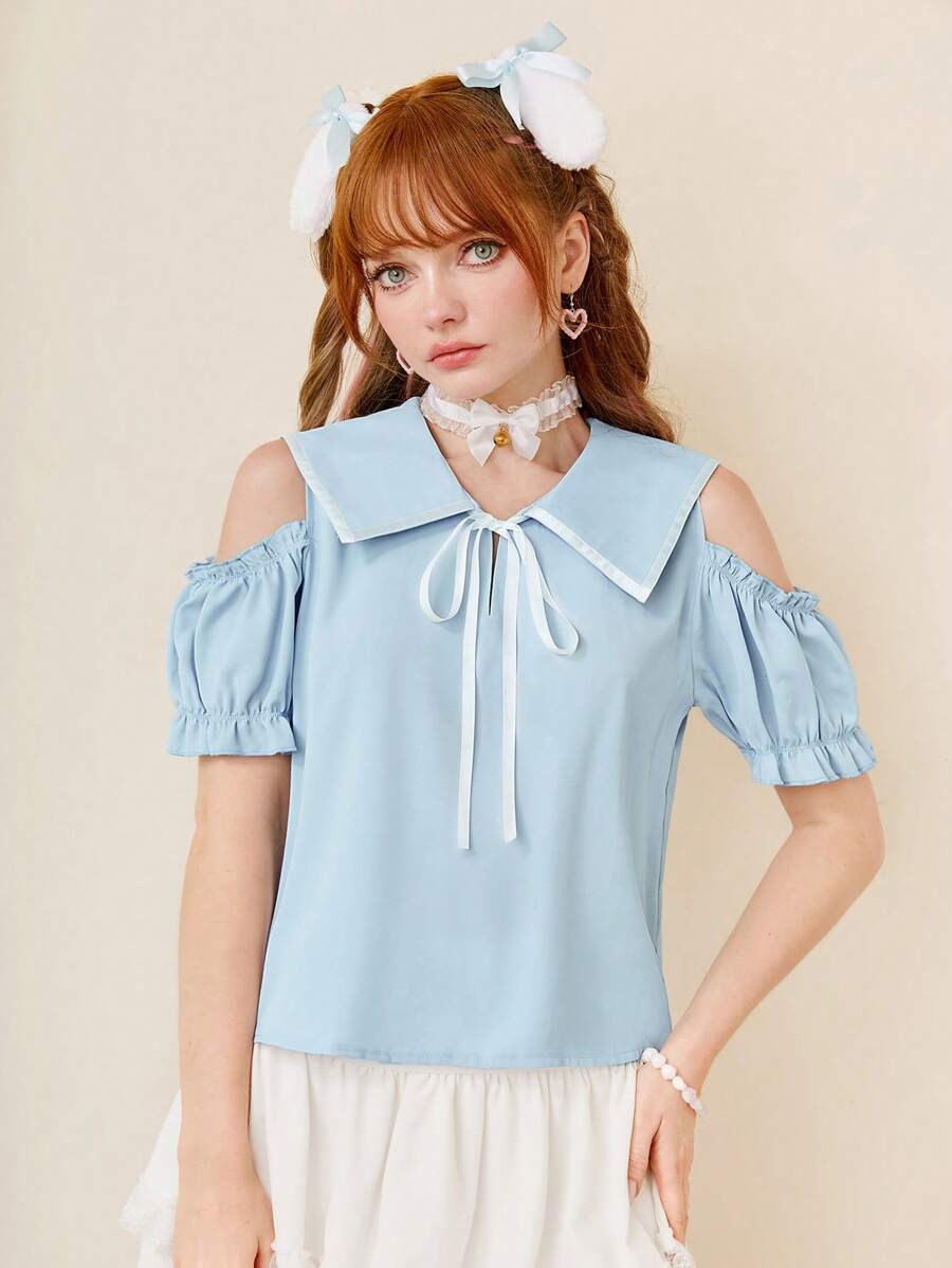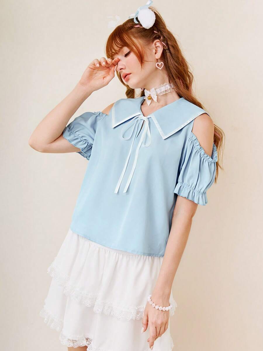 Kawaii Sailor Collar Cold Shoulder Blouse
