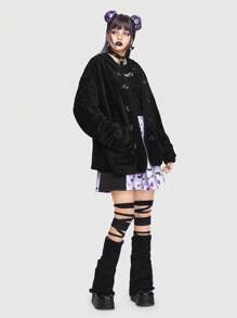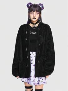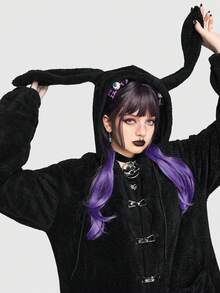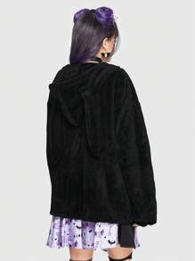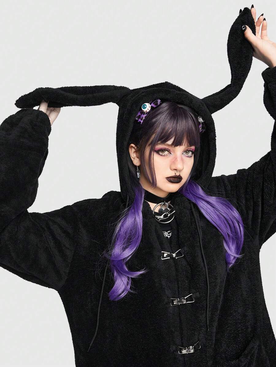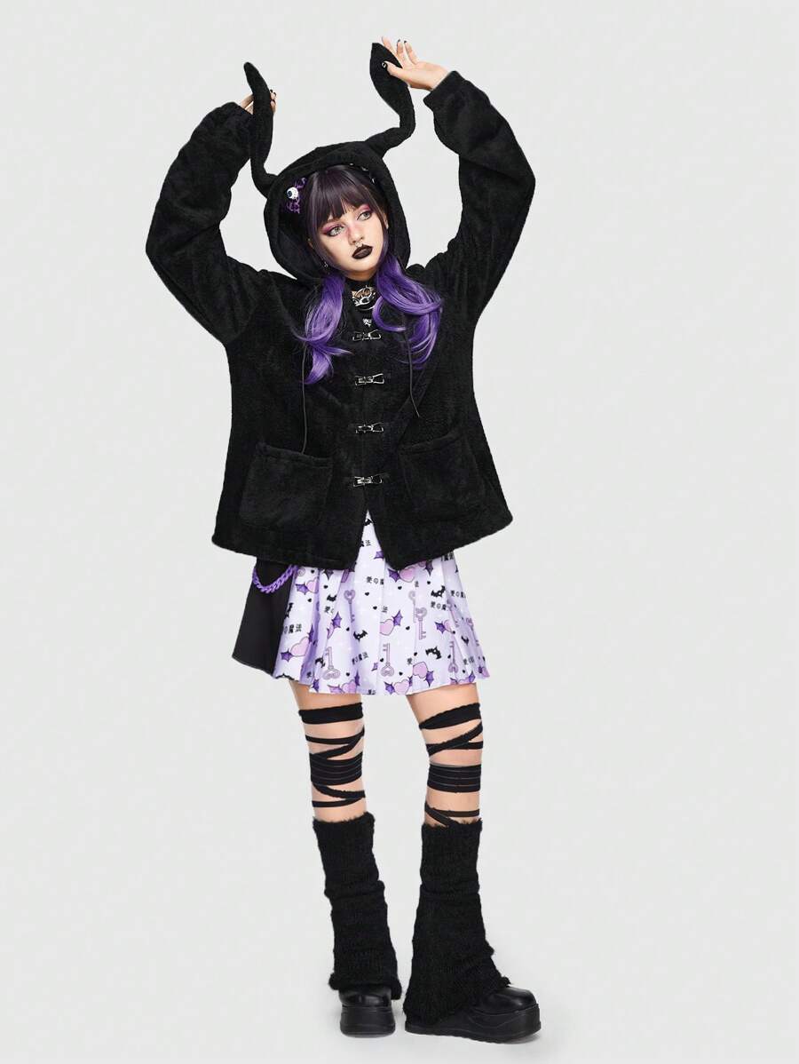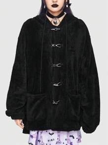 Kawaii Solid Buckle Front Hooded Fuzzy Coat